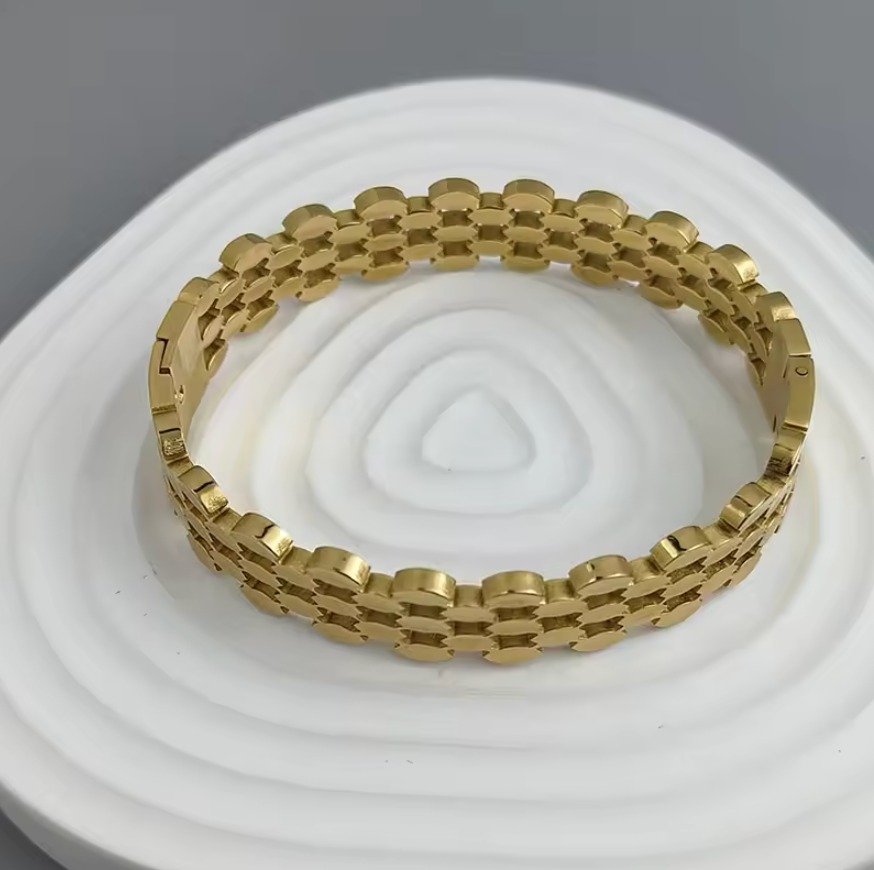 Elevate your everyday look with this statement bracelet featuring glossy interlinked segments — timeless, bold, and effortlessly chic.